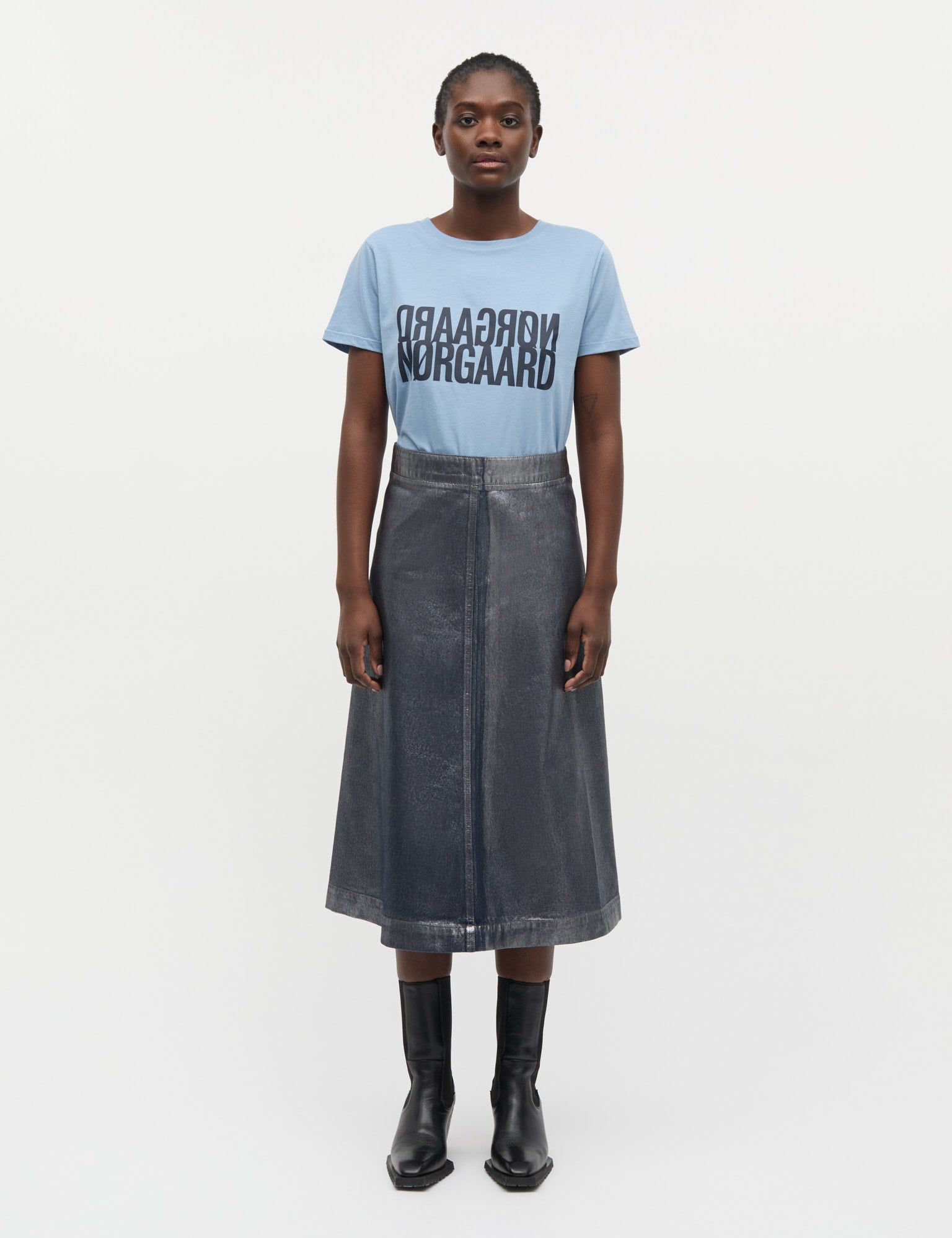 Weiches und leichtes T-Shirt mit kurzen Ärmeln, Rundhalsausschnitt und einem teilweise spiegelverkehrten Logo auf der Brust.