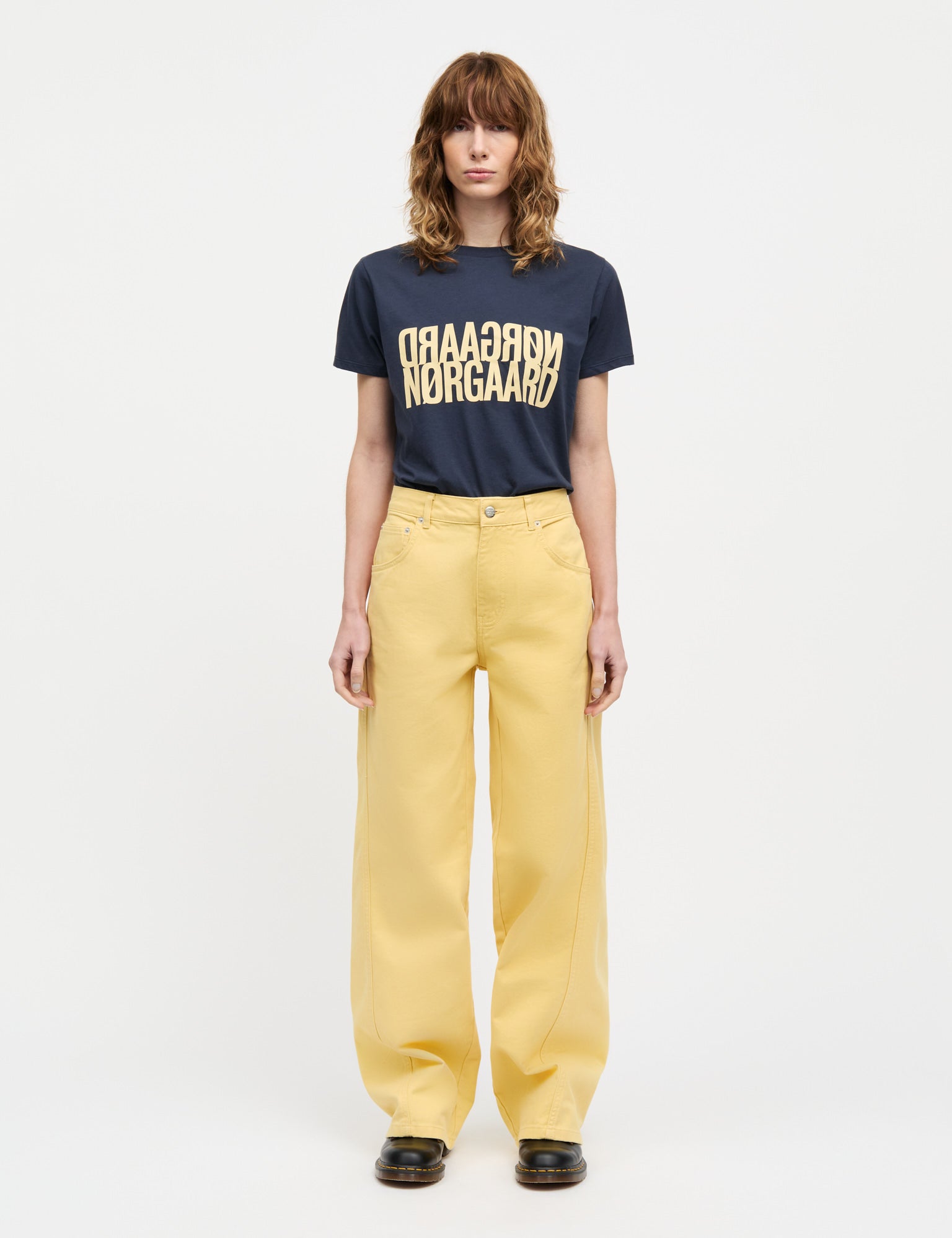 Leichtes T-Shirt mit kurzen Ärmeln, einem Rundhalsausschnitt und einem großen, teilweise spiegelverkehrten Logoprint auf der Brust.