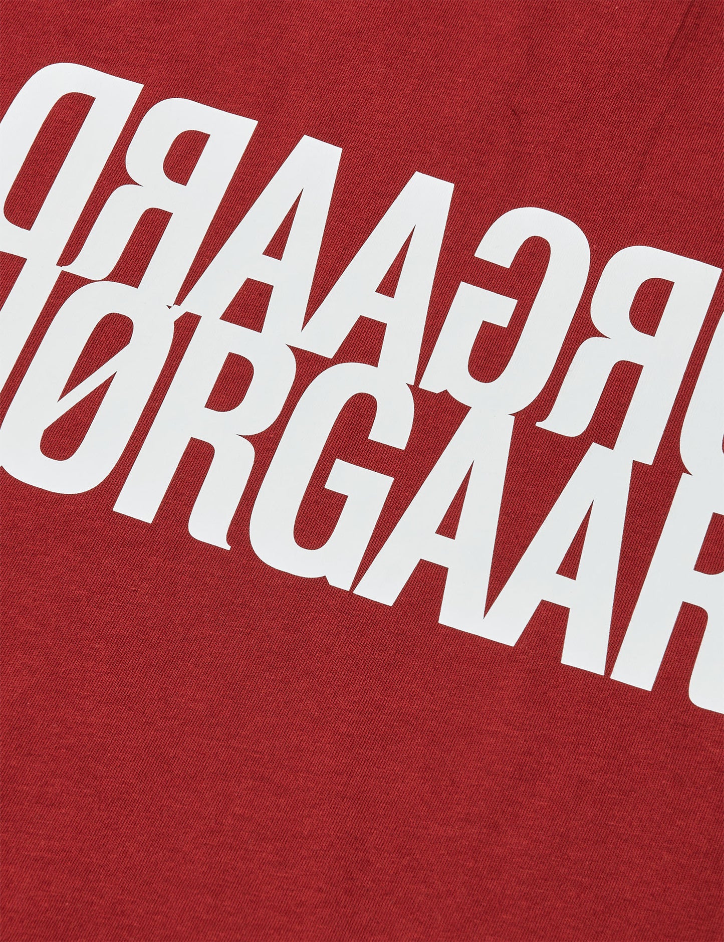 Leichtes T-Shirt mit kurzen Ärmeln, einem Rundhalsausschnitt und einem großen, teilweise spiegelverkehrten Logoprint auf der Brust.