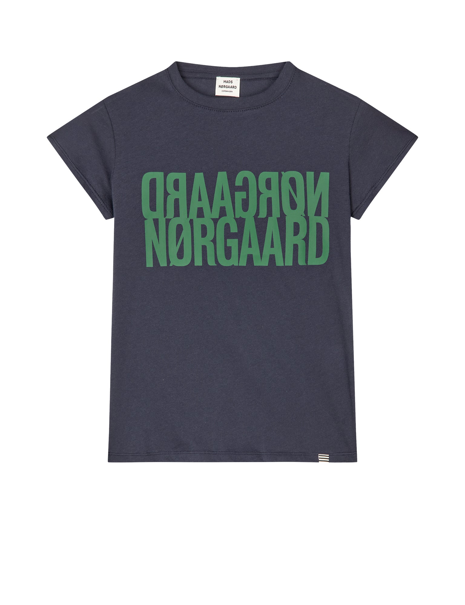 Leichtes und weiches T-Shirt mit sehr kurzen Ärmeln und einem großen, teilweise spiegelverkehrten Logoprint auf der Brust.