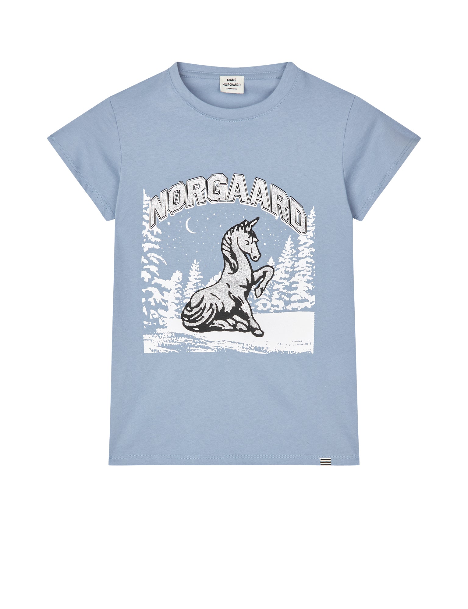 Leichtes und weiches T-Shirt mit sehr kurzen Ärmeln und einem großen Einhorn-Print.