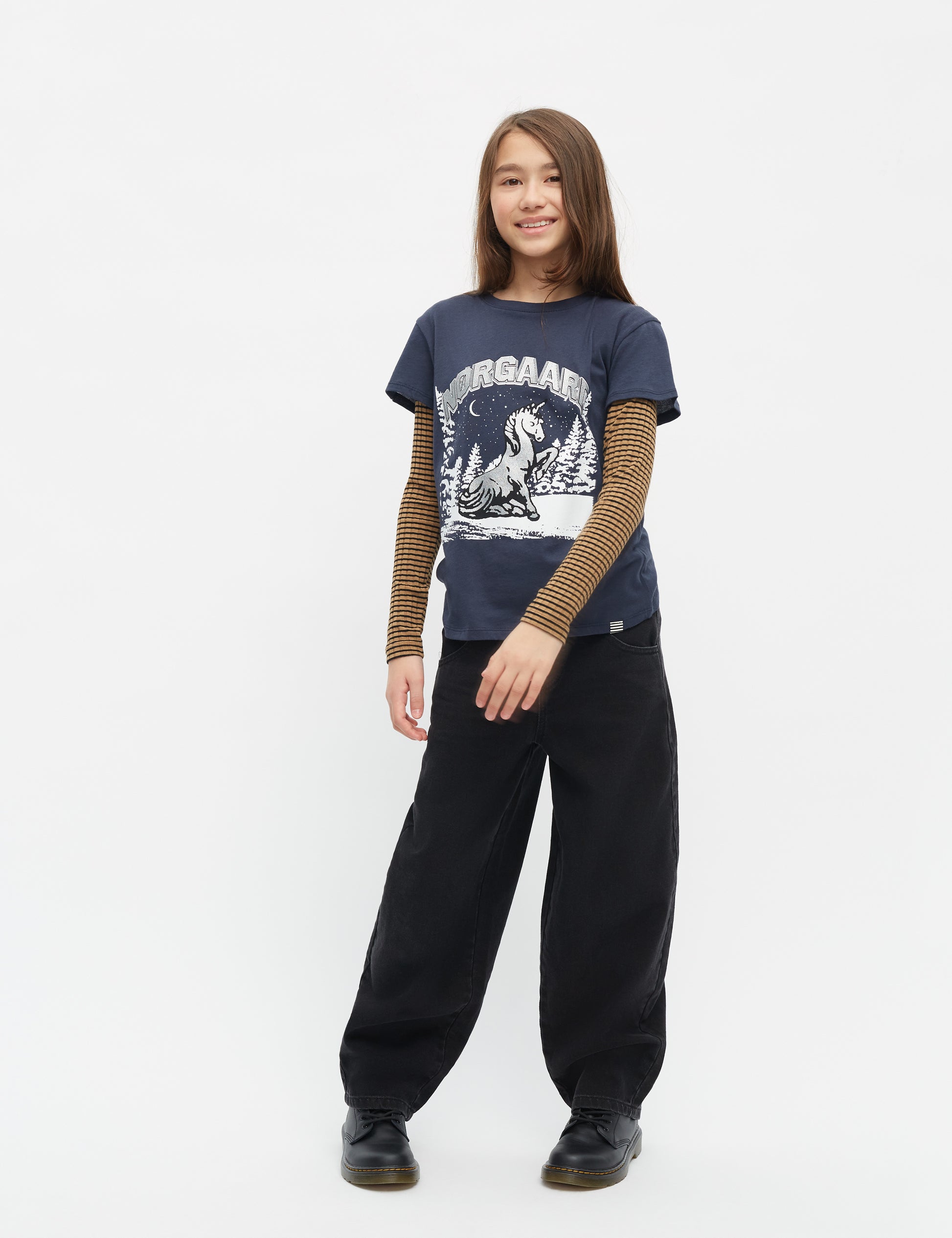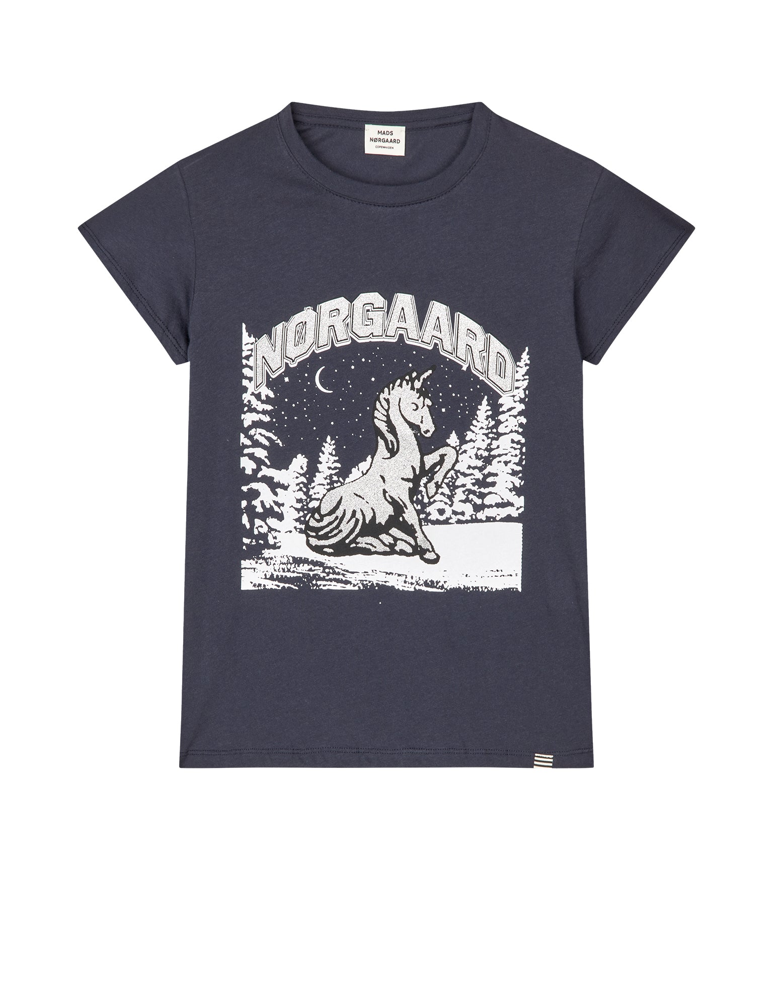 Leichtes und weiches T-Shirt mit sehr kurzen Ärmeln und einem großen Einhorn-Print.