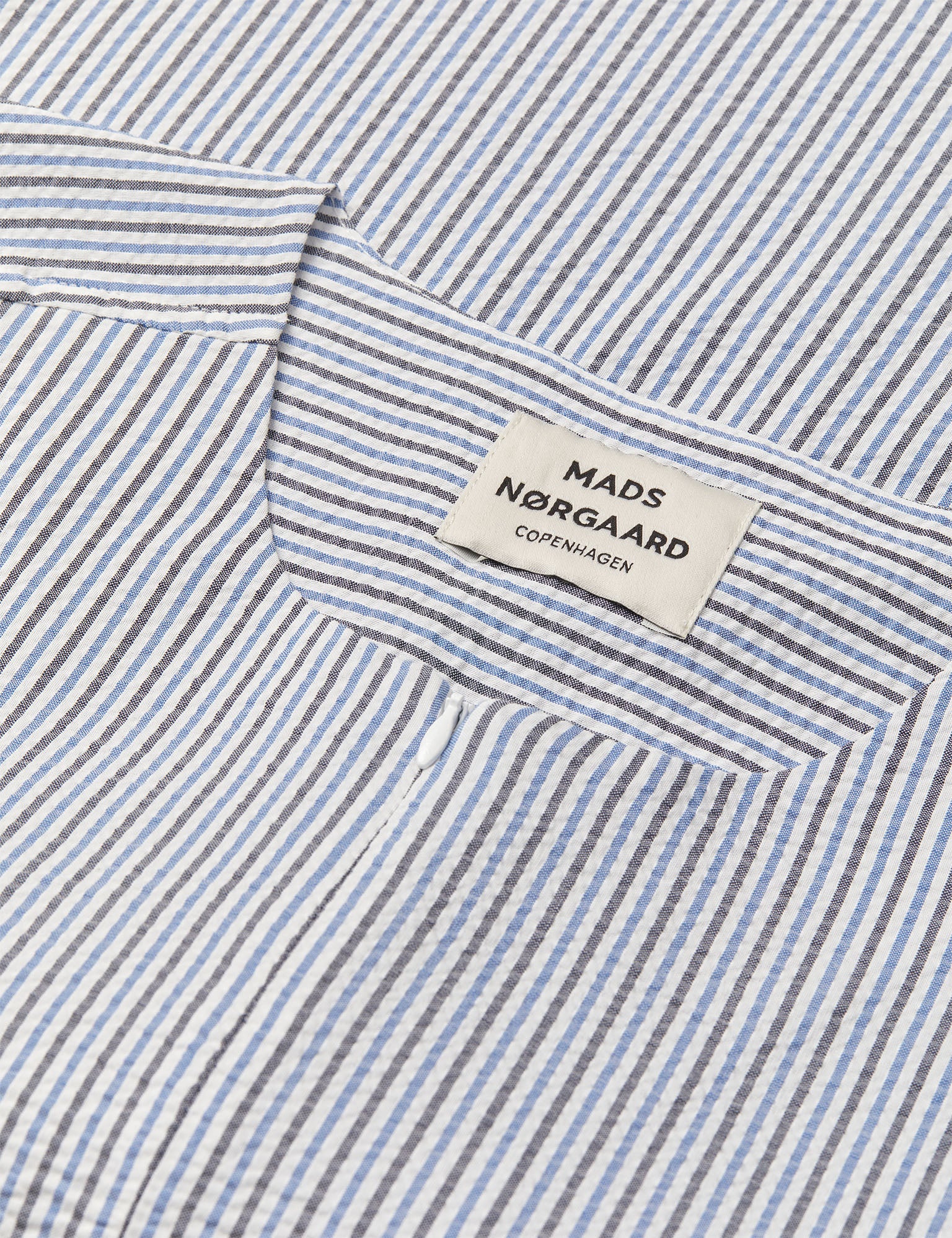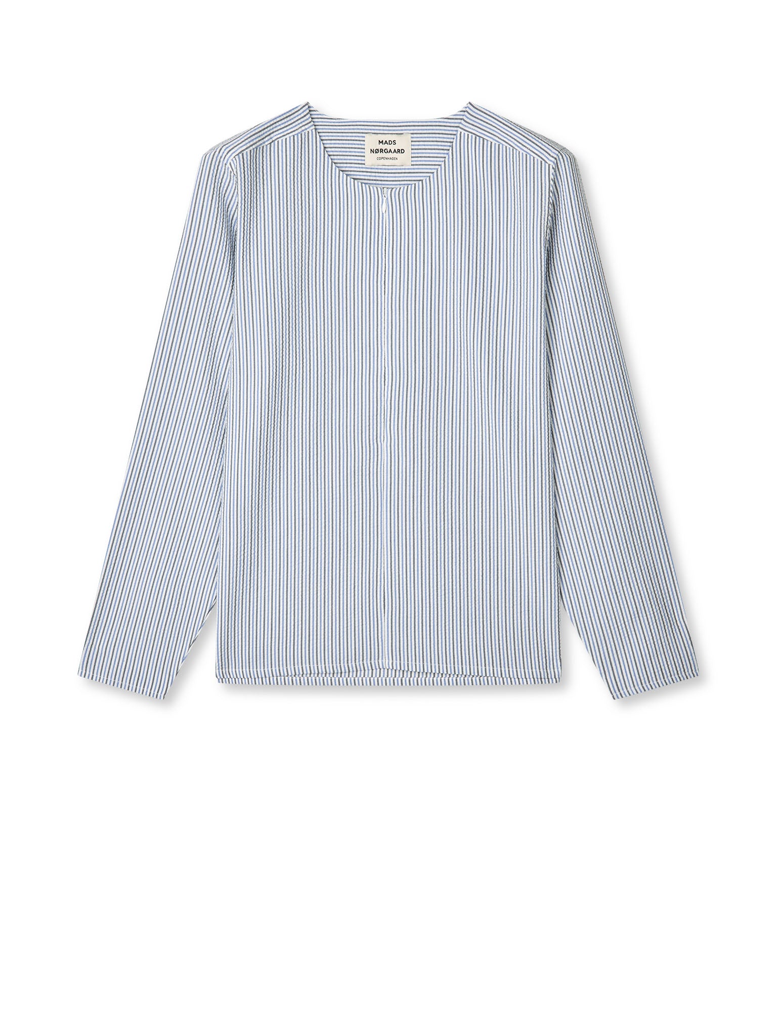 Langärmelige Bluse mit Reißverschluss vorne und schmalen Streifen. Mit Rundhalsausschnitt und lockerer Passform.