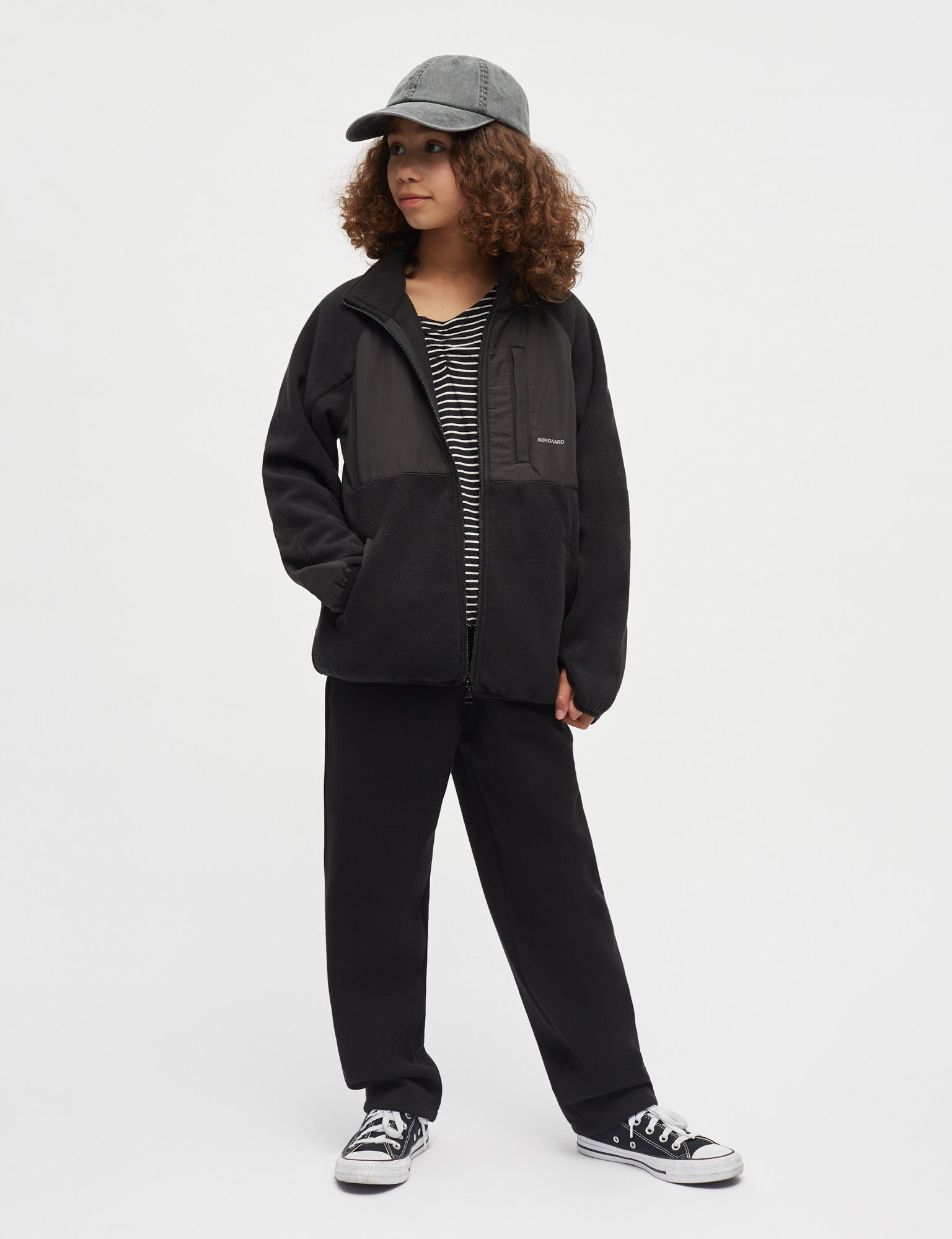 Weiche Fleecejacke in regulärer Passform mit hohem Kragen und Reißverschluss, Seitentaschen und einer vertikalen Tasche mit verdecktem Reißverschluss auf einer Brustseite.