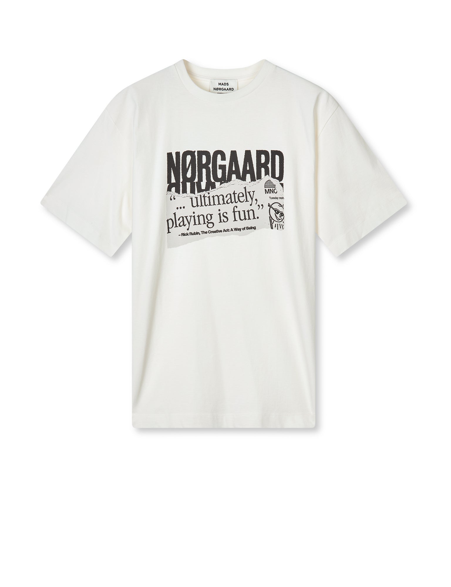 Das T-Shirt Soft Single Dassel ist oversized, aus weicher Bio-Baumwolle gefertigt und mit einem engen Rundhalsausschnitt sowie einem Print mit einer Aufforderung ausgestattet.