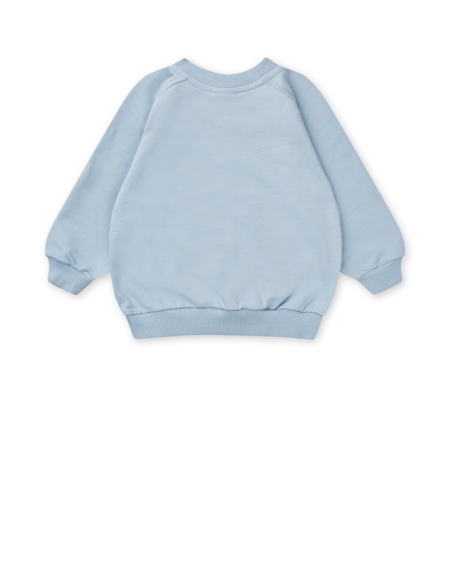 Weiches Sweatshirt aus Baumwolle. Das Sweatshirt hat ein kleines Logo auf der Brust. Die Größen 56 bis 92 haben Knöpfe am Hals, die Größen 98 bis 104 nicht.