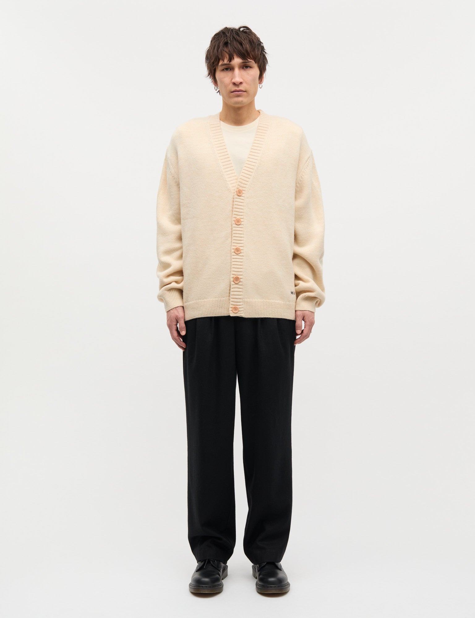 Weicher und lockerer Strickcardigan mit Dropped-Shoulders, V-Ausschnitt, Knöpfen und Rippbündchen.