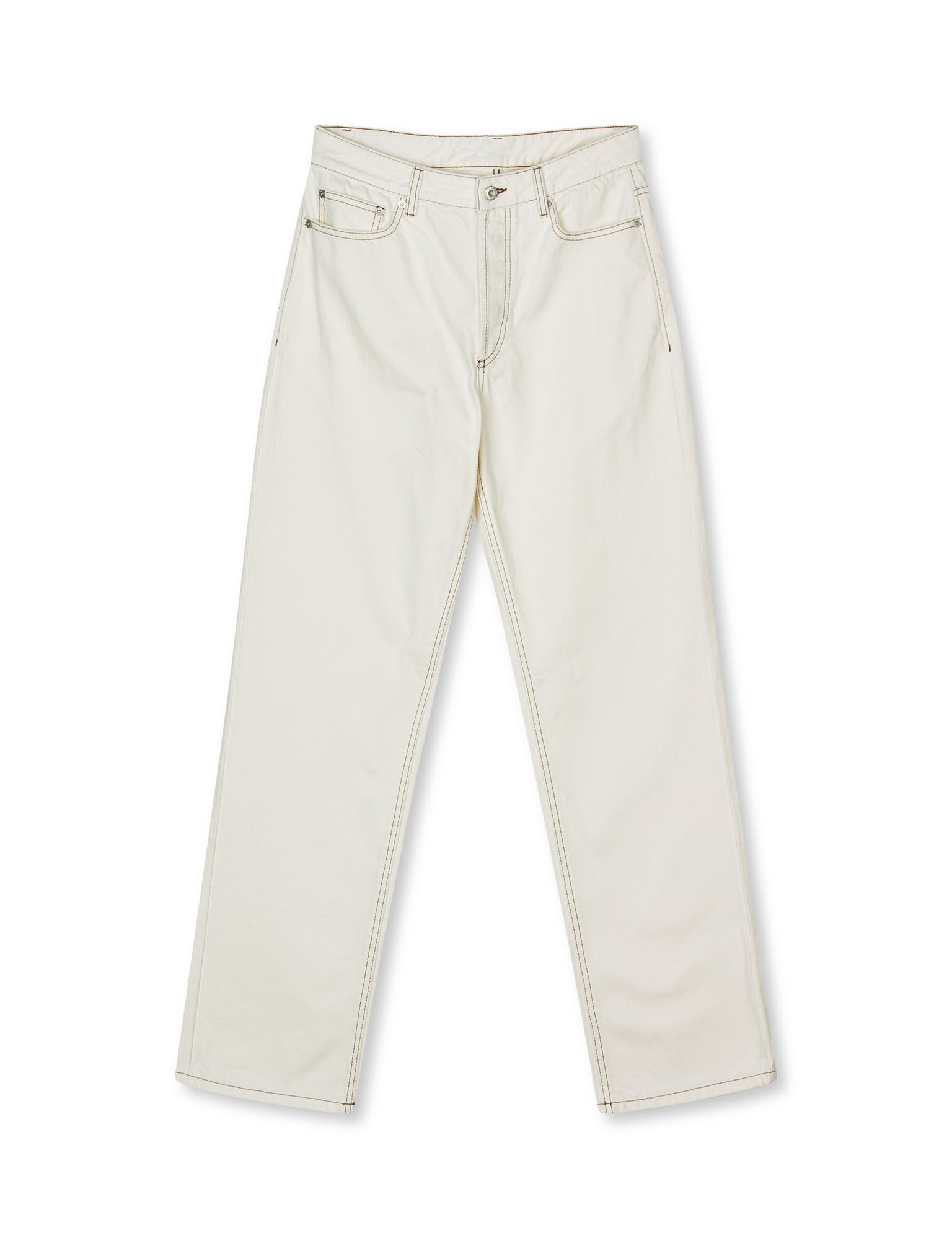 Baumwolljeans im klassischen Schnitt mit Five-Pocket-Stil, geradem Beinverlauf und einem Logo auf einer Lederlasche.