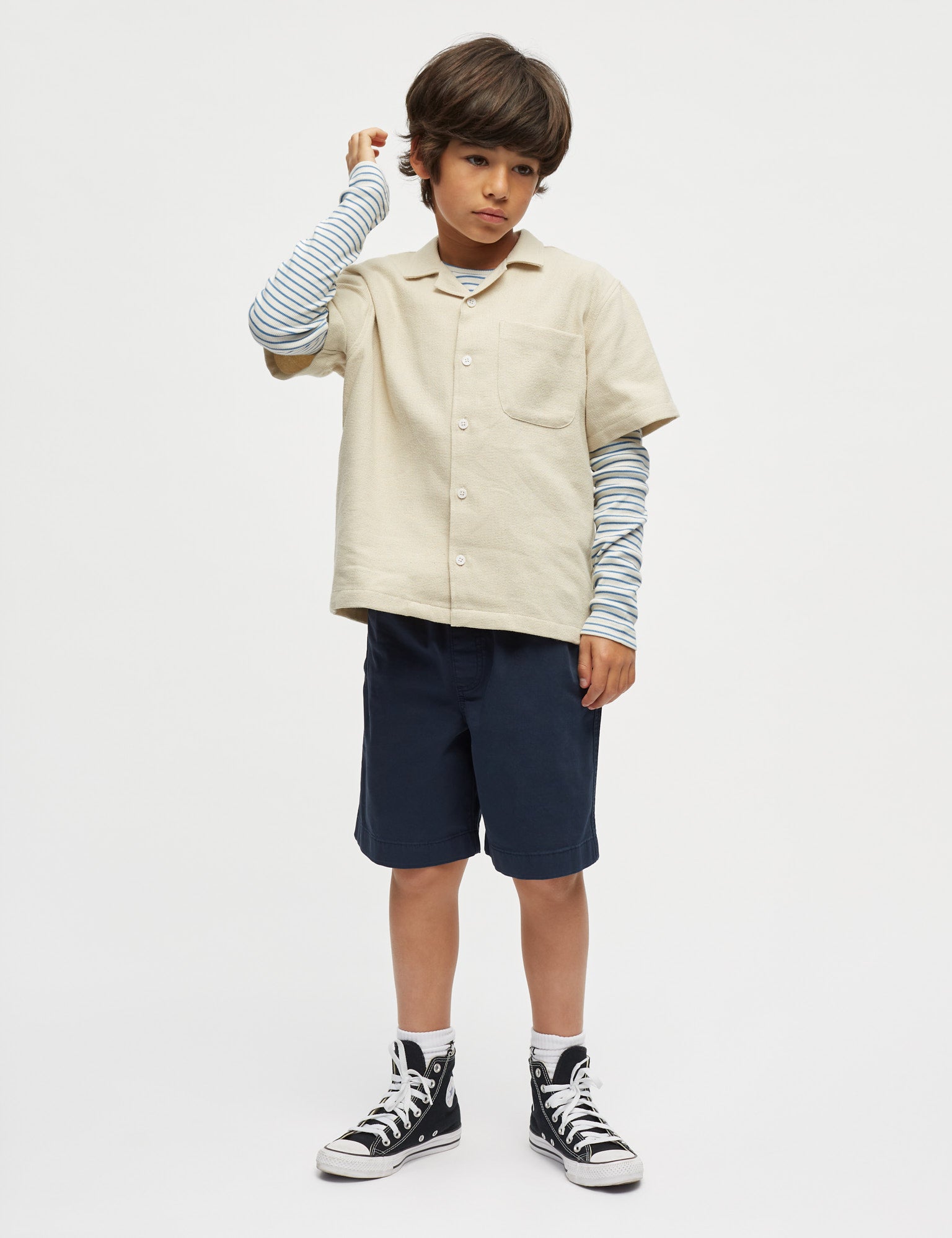 Weiche und leicht dehnbare Shorts aus Canvas mit geradem Bein, schrägen Taschen, Gesäßtasche und Gummizug im Bund.