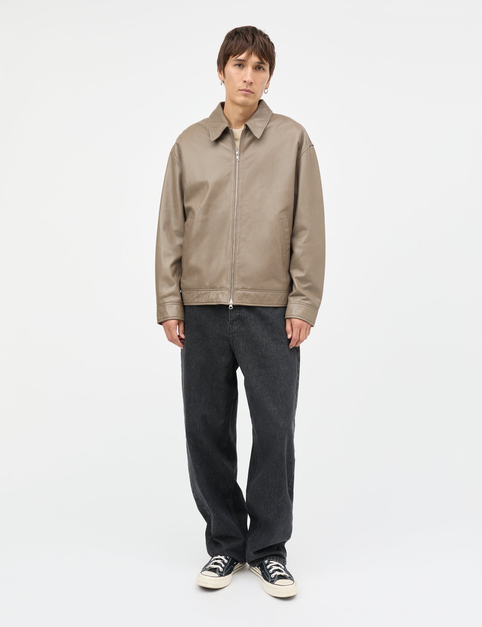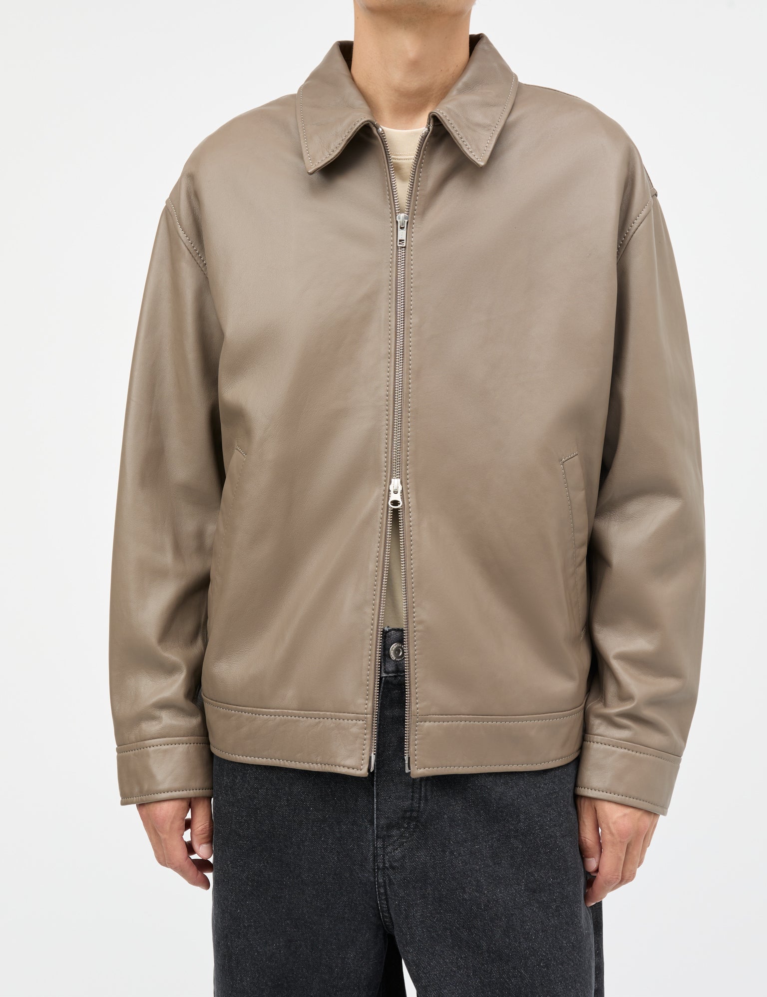 Lässige Lederjacke mit klassischem Kragen, Seitentaschen und Reißverschluss.