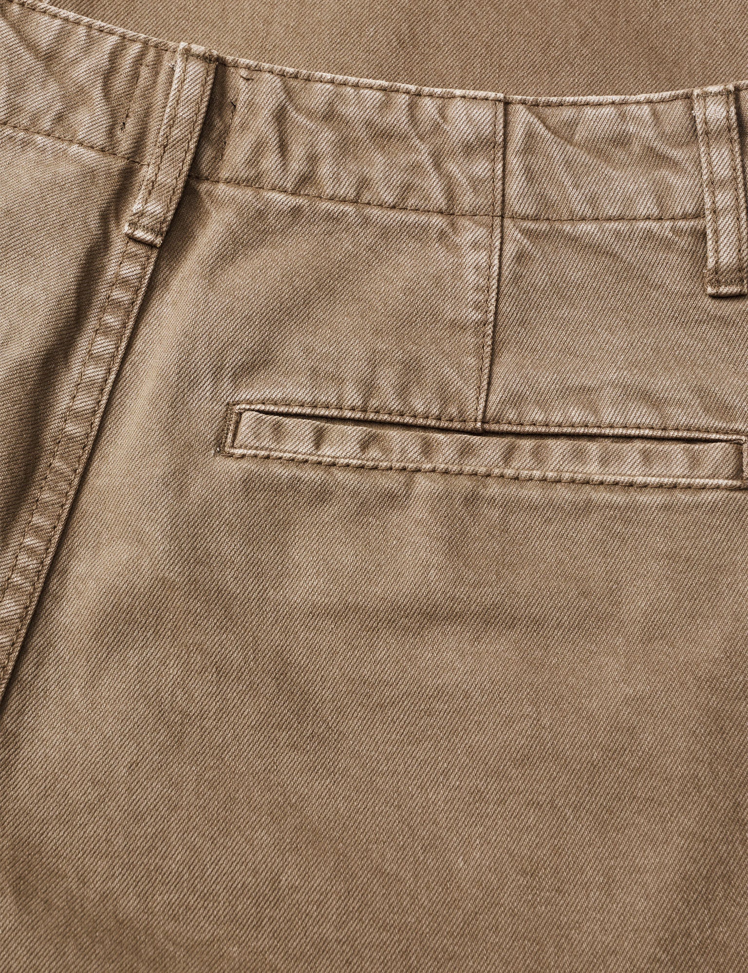 Classic trousers with straight legs and rises in a uniform, tone-on-tone look. Two large front pockets, belt loops at the waistband and button closure. The back is kept simple without pockets.
