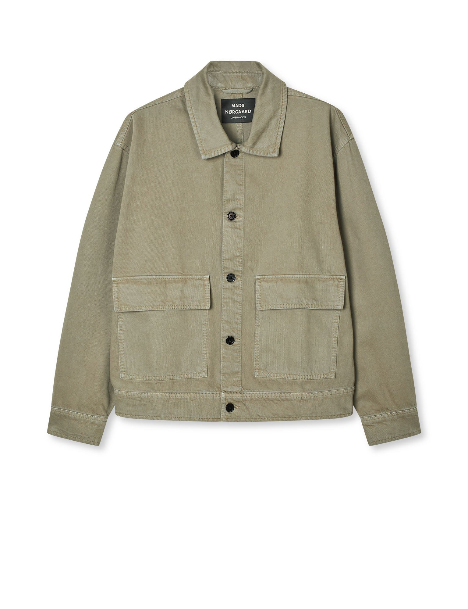 Weite und lockere Jacke mit einem Cut-away-Kragen, mittelgroßen Knöpfen, Manschetten und zwei Außentaschen.