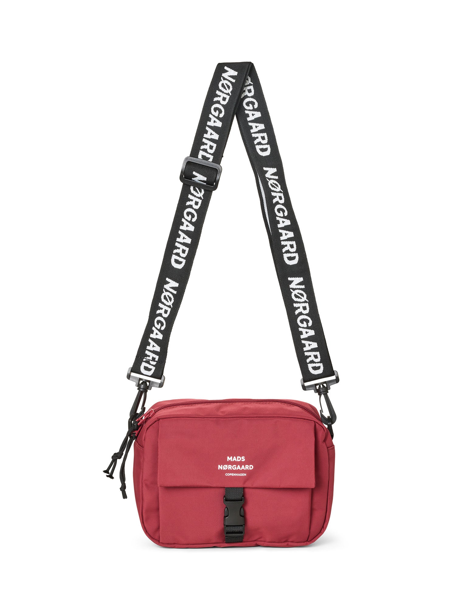 Crossbody-Tasche mit einem breiten, verstellbaren und abnehmbaren Logo-Riemen, die mit einem Reißverschluss, einer Innentasche und einer Außentasche mit Klickverschluss ausgestattet ist.