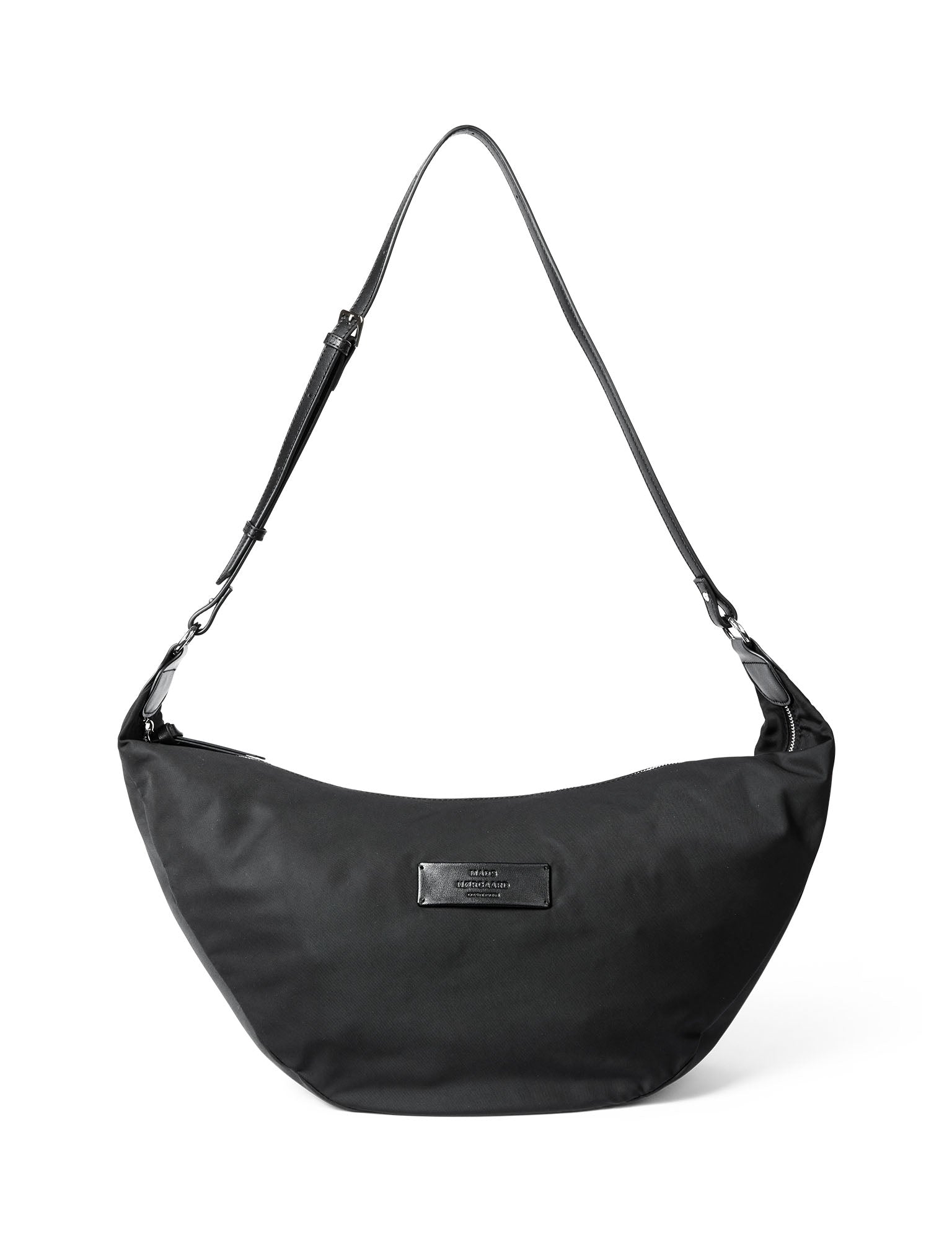 Crossbody-Tasche mit schmalem, verstellbarem Riemen, Reißverschluss, Innentasche und einem komplett in Schwarz gehaltenen Logoetikett.