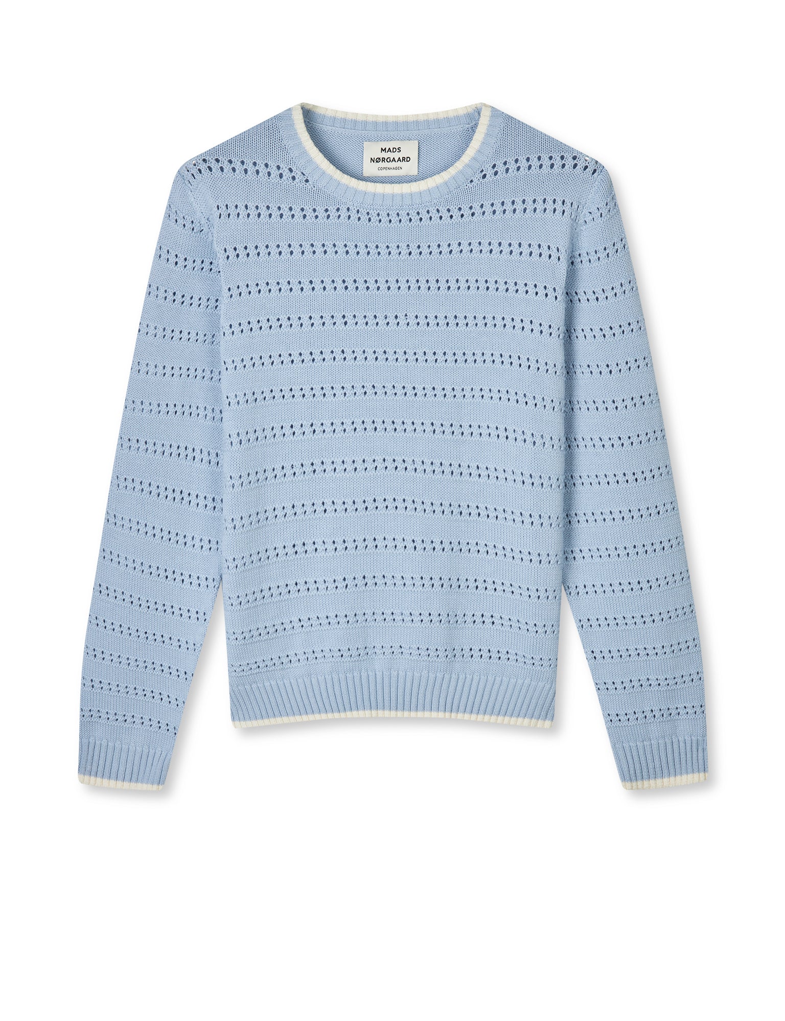 Tight Cotton Ingrid ist mit einem Lochmuster gestrickt und mit schmalen, kontrastierenden Abschlüssen an Hals, Handgelenken und Bund versehen.
