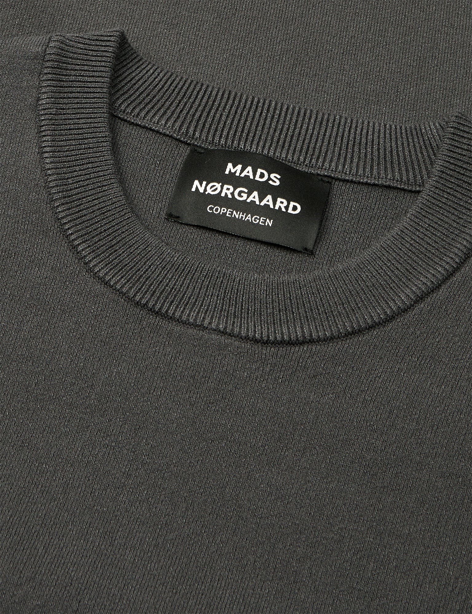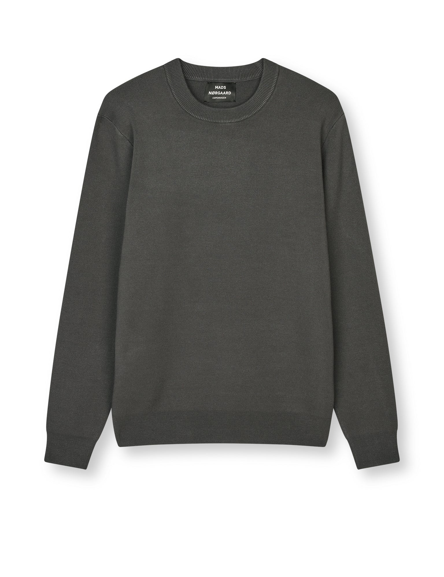 Komplett glatter und schlichter Strickpullover mit einem Rundhalsausschnitt und gestrickten Rippbündchen.
