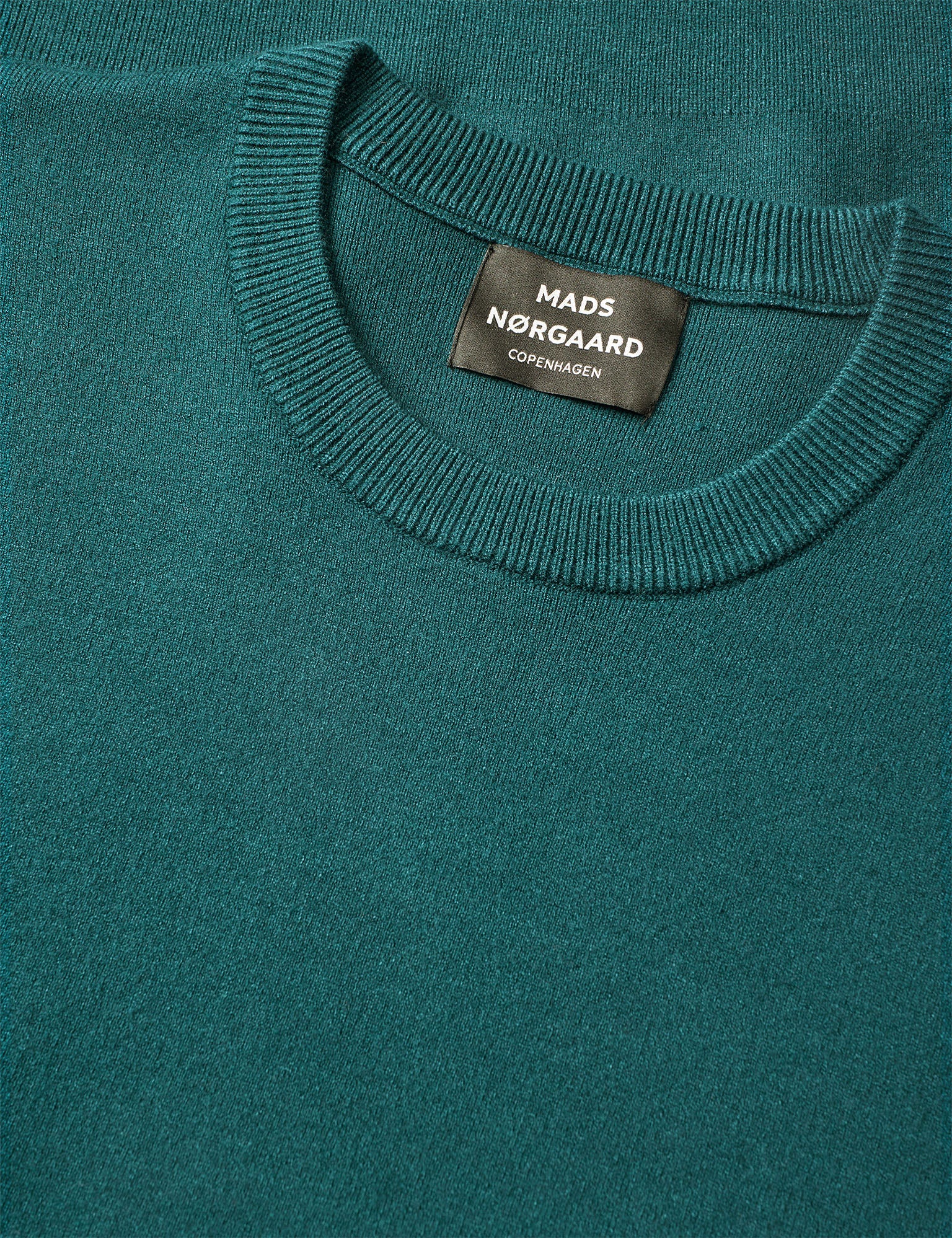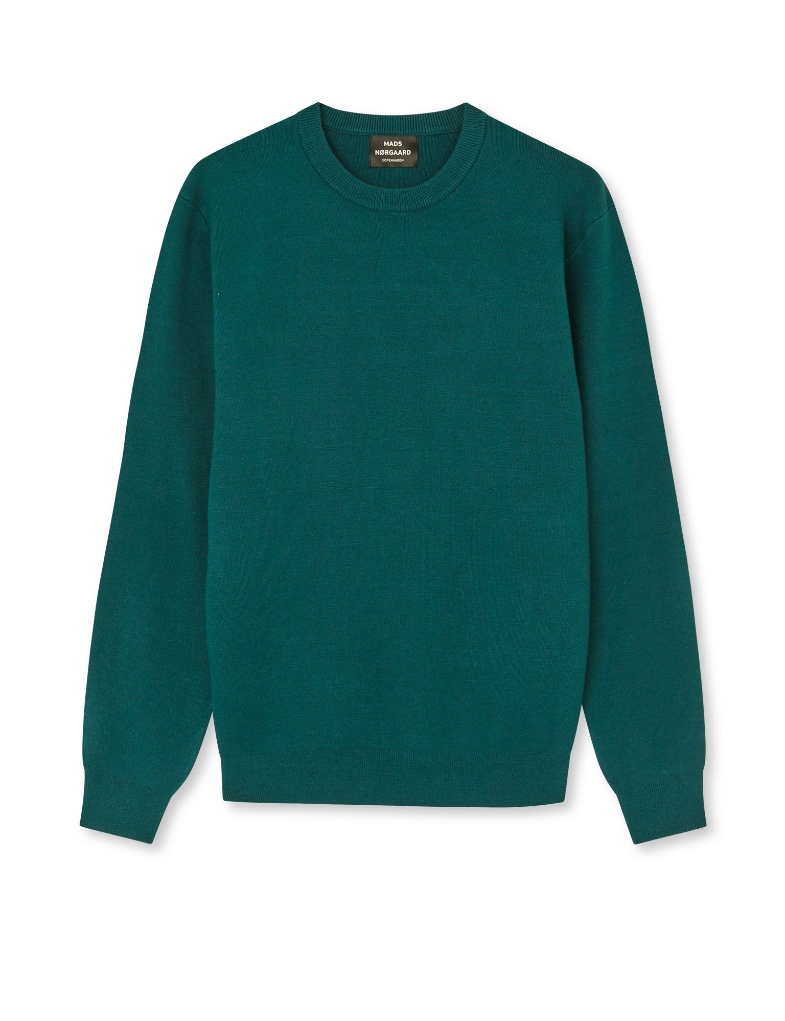 Komplett glatter und schlichter Strickpullover mit einem Rundhalsausschnitt und gestrickten Rippbündchen.