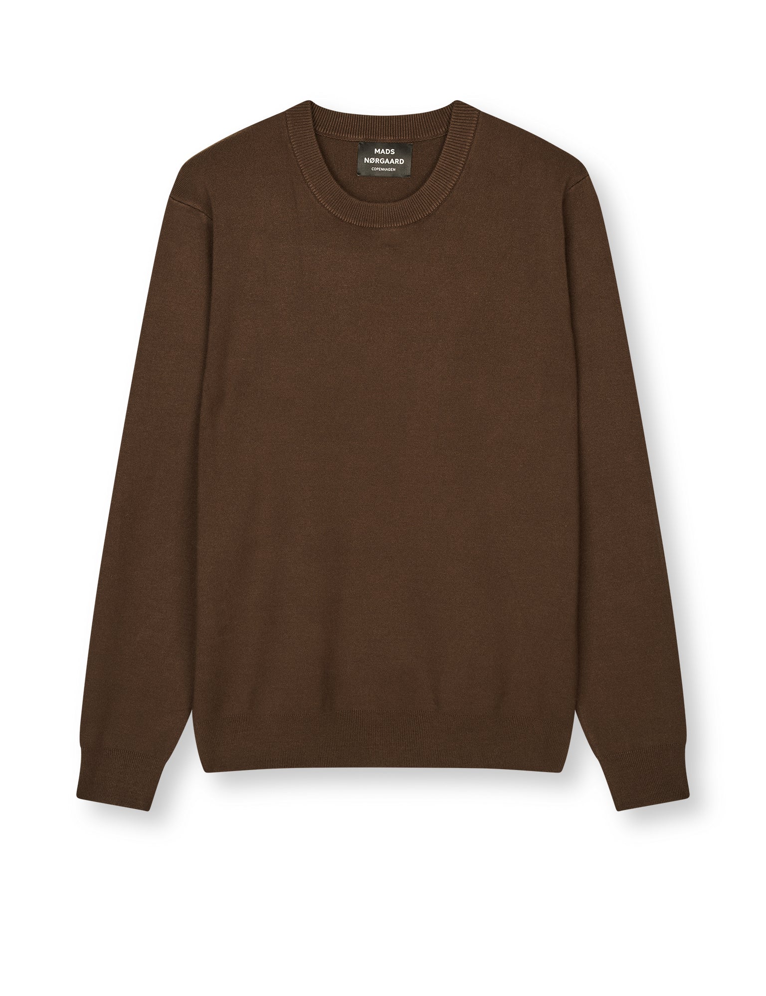 Komplett glatter und schlichter Strickpullover mit einem Rundhalsausschnitt und gestrickten Rippbündchen.