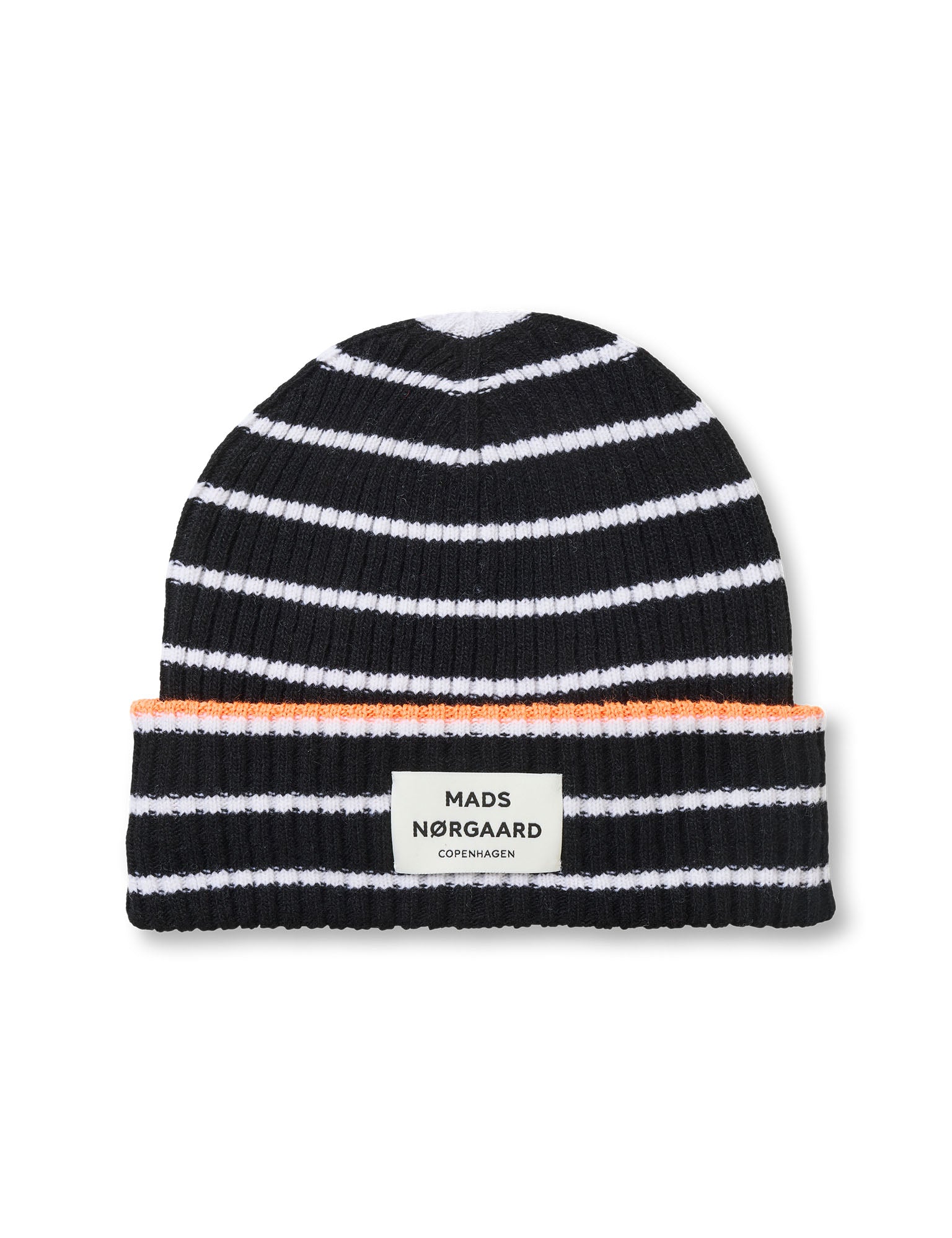 Weiche Rippstrickmütze mit einer breiten, doppelt umgeschlagenen Krempe, schmalen Streifen und aufgenähtem Logo-Etikett.