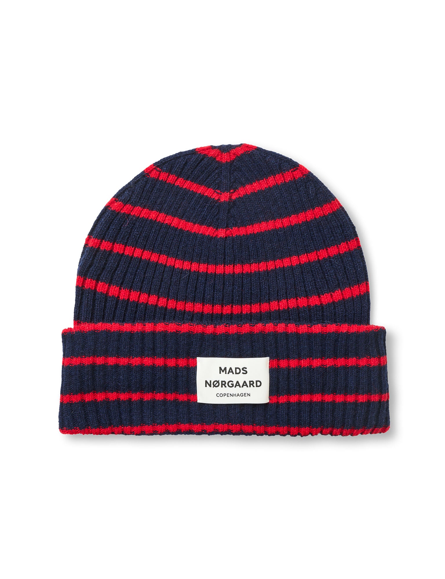 Weiche Rippstrickmütze mit einer breiten, doppelt umgeschlagenen Krempe, schmalen Streifen und aufgenähtem Logo-Etikett.
