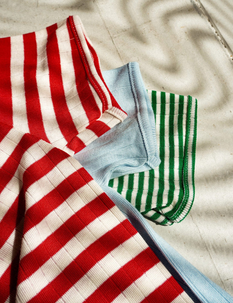 Das neue gestreifte Eis von Hansens und Mads Nørgaard – Copenhagen ist da, um Sommerstimmung in ganz Dänemark zu verbreiten. Diese vegane Köstlichkeit wird aus dänischen Beeren hergestellt – genieße sie, während du unsere #101 Limited Edition in passenden Beerentönen trägst.