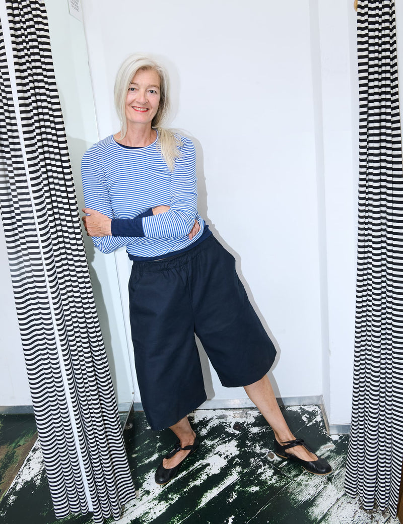 Die Idee hinter #101 war es, ein zugängliches und erschwingliches Basic-Teil für alle anzubieten. Die Welt wandelt sich ständig – aber manche Dinge sollten beständig bleiben. So wird dieses gerippte Langarmshirt auch heute noch lokal in Dänemark hergestellt: gestrickt in Ikast, gefärbt in Herning und genäht in unserer Näherei in Korsør. Nach wie vor One Size, weich, bequem und aus 100 % BCI-Baumwolle hergestellt.